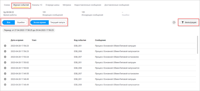 Во вкладке Журнал событий вы можете наблюдать за работой приложения. Есть возможность вывести на экран только ошибки, просматривать события за все время либо только за текущий запуск, а также фильтровать события по нужному вам условию: