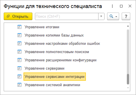 Разверните ветку Стандартные и откройте Управление сервисами интеграции:
