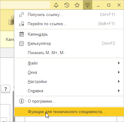 Запустите информационную базу Офис от имени пользователя с административными правами и откройте Функции для технического специалиста: