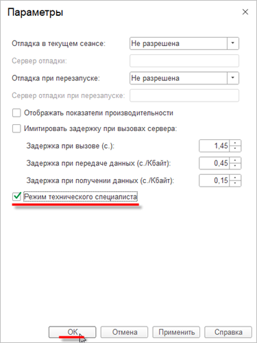 Установите флажок рядом с параметром Режим технического специалиста. Нажмите ОК: