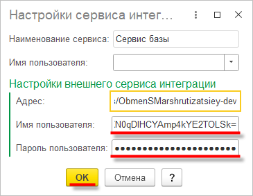 В группе Настройки внешнего сервиса интеграции задайте свойства: