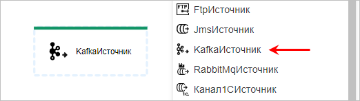 Свойства узла процесса интеграции вида «KafkaИсточник»
