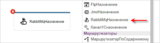 Свойства узла процесса интеграции вида «RabbitMqНазначение»