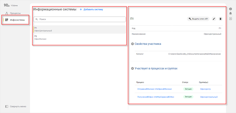 Чтобы перейти в пользовательский интерфейс «1С:Шины», откройте страницу приложения. Для этого в панели управления во вкладке Приложение выберите нужное и откройте его URL: