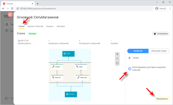 Стандартно доставка сообщений не регистрируется в журнале. Регистрацию доставки сообщений можно включить для конкретного процесса интеграции. Для этого выполните следующие действия: