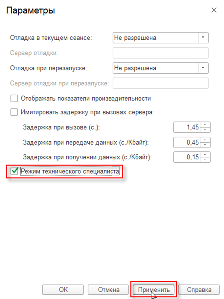 • Установите флажок рядом с параметром Режим технического специалиста. Нажмите Применить и закройте окно: