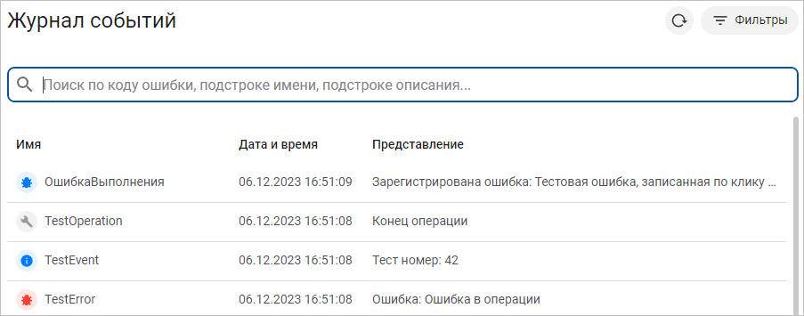 Здесь вы увидите все зарегистрированные события журнала событий, в том числе те, которые вы описали в проекте:
