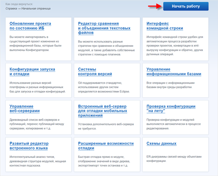 У вас откроется стартовое окно. Нажмите Начать работу: