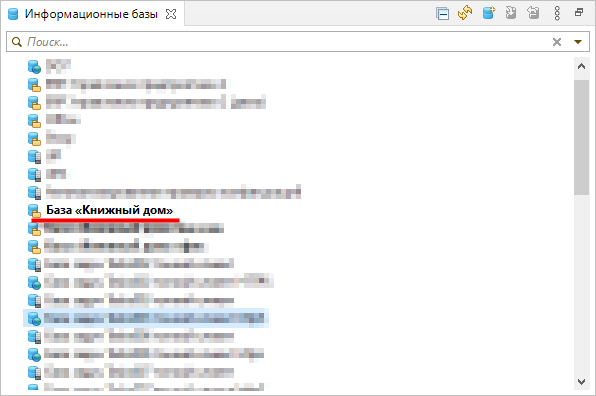 Откройте панель Информационн ые базы. По умолчанию она находится в правой части экрана. Однако если вы ее закрыли, вы можете открыть эту панель из главного меню основного окна, нажав Окно ⟶ Показать панель ⟶ Информационные базы:
