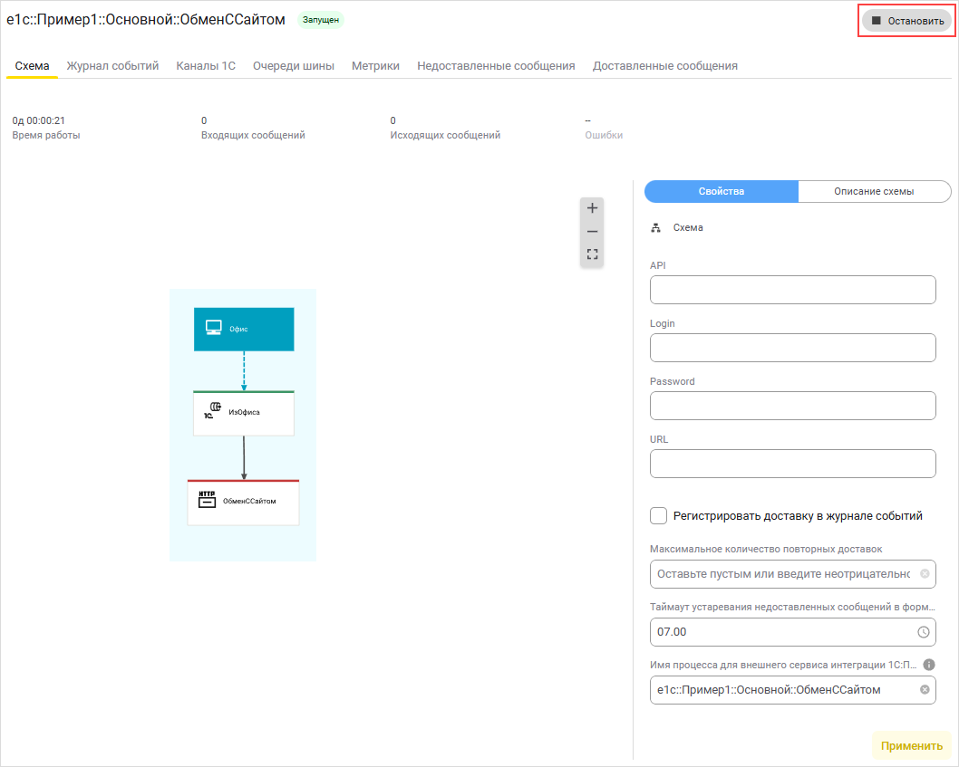 Также важно иметь в виду, что при изменении какого-либо параметра в уже запущенном процессе интеграции процесс будет автоматически остановлен и перезапущен.