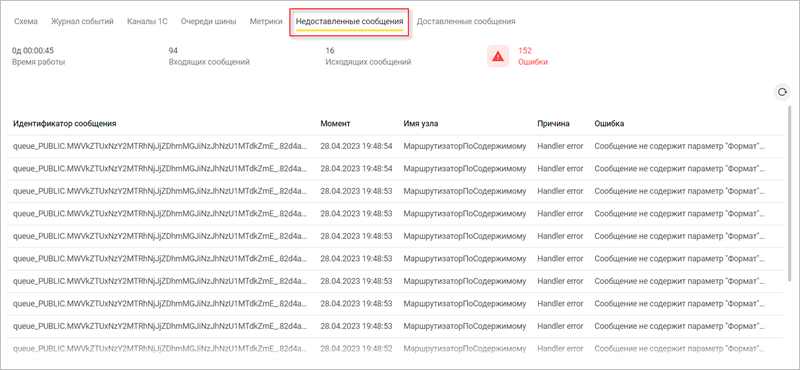 Сообщения, которые не были доставлены получателям из-за какой-то ошибки или по причине устаревания, хранятся в канале недоставленных сообщений.