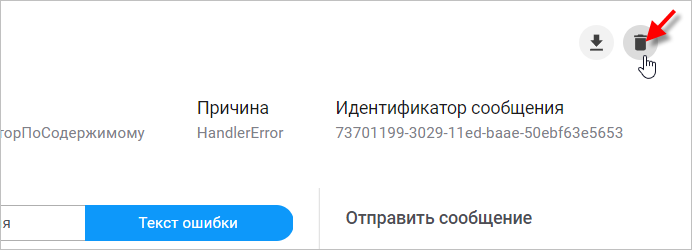 Чтобы выгрузить свойства недоставленного сообщения и подробную информацию об ошибке, нажмите на иконку загрузки в правом верхнем углу: